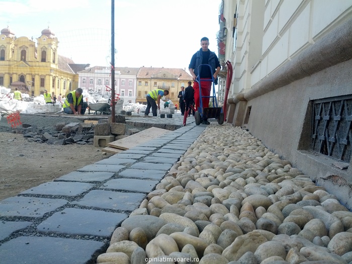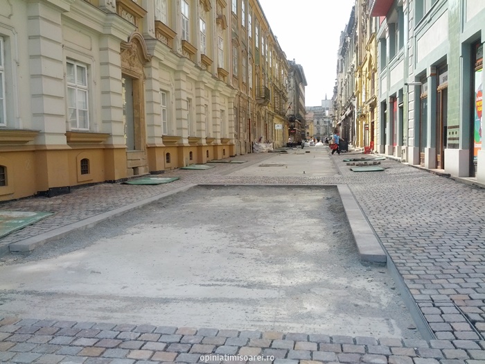 Aproape jumatate din strada Eugeniu de Savoya a fost pavata deja, insa muncitorii de la Romprest, firma care a castigat licitatia pentru lucrarile de reabilitare a centrului istoric, mai au destul de lucru. Potrivit edilului-sef, in cateva saptamani ar trebui sa fie gata si Piata Libertatii.