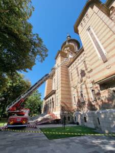 TIMISOARA. Dupa ce au fost facute toate demersurile birocratice, la Catedrala Mitropolitana din Timisoara au inceput lucrarile propriu-zise de reparatii la nivelul sistemului ce preia apa de ploaie. Mai exact, se fac reparatii la jgheaburi si burlane si se verifica siguranta elementelor din constructii.
