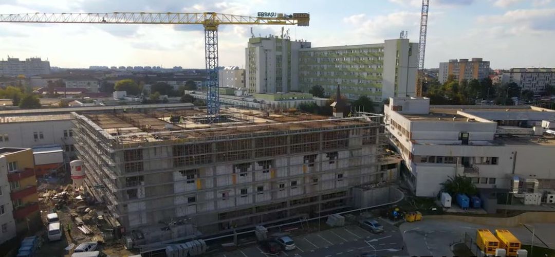TIMISOARA. Este foarte avansata structura viitorului Centru de Mari Arsi de la Timisoara, pe langa care se vor amenaja si alte sectii. Hub-ul de sanatate a crescut in ritm alert peste vara si continua sa se lucreze sustinut la noul corp de cladire de la Spitalul Judetean.
