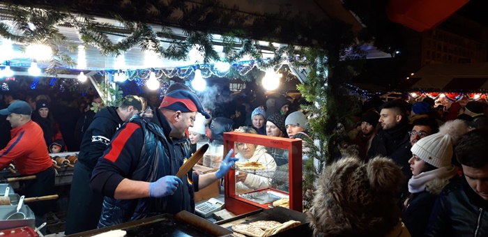 Odata cu aprinderea luminitelor, s-a dat oficial si startul Targului de Craciun, unde timisorenii isi vor putea astampara foamea, vor putea ciocni un pahar de vin fiert ori vor putea cumpara tot felul de cadouri si ornamente pentru sarbatori, atat din Piata Victoriei, cat si din Libertatii.