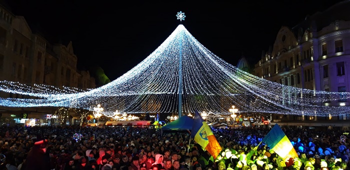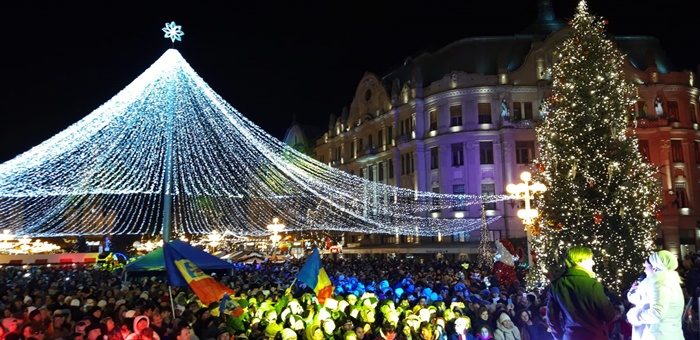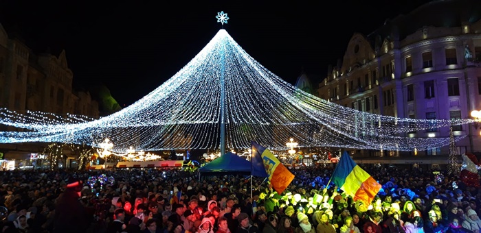 Mii de timisoreni au venit in centru sa asiste la momentul aprinderii luminitelor de la ornamente, sa admire bradul italian si sa se bucure de concerte.