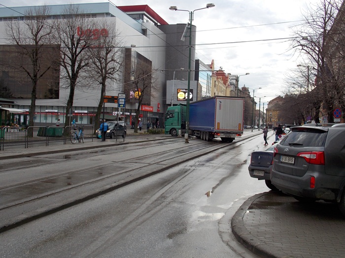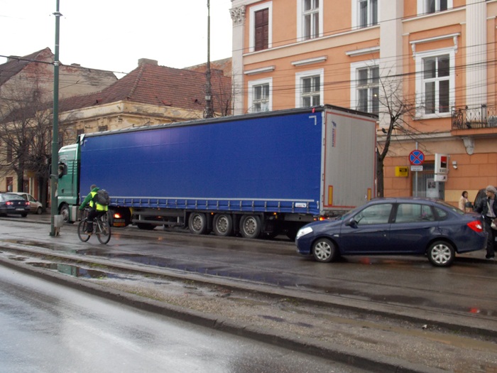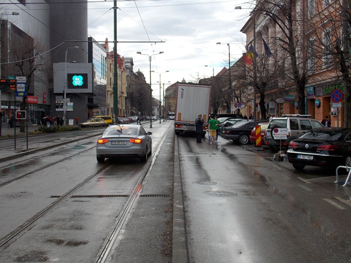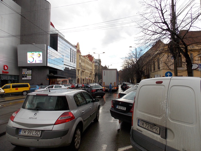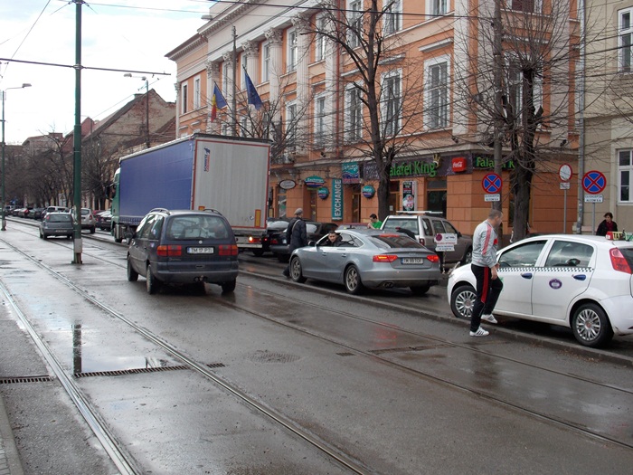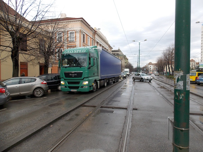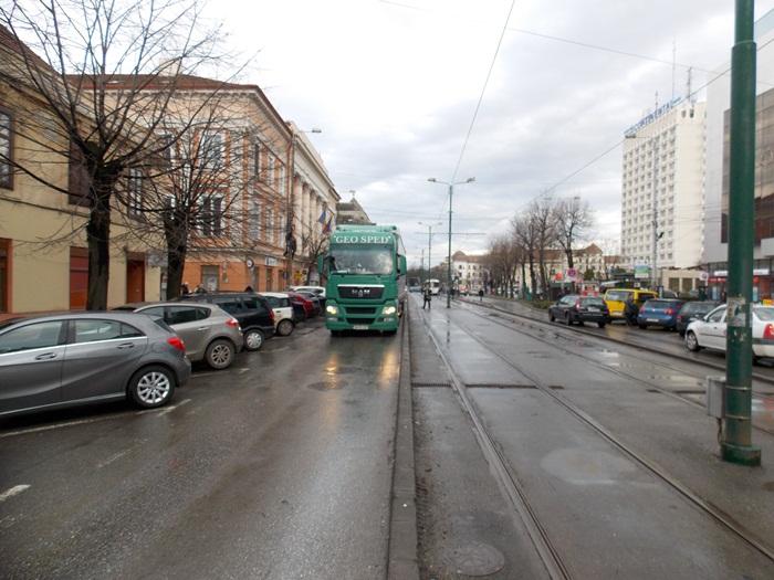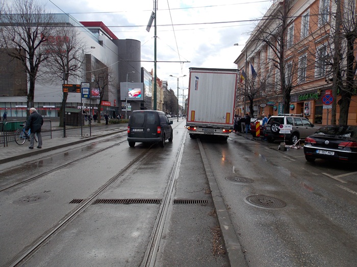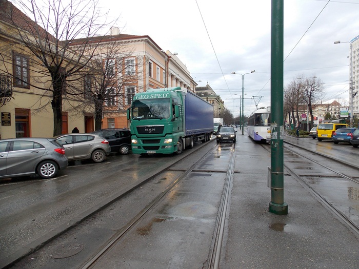 Cand si-a dat seama ce s-a intamplat, soferul de tir a oprit mastodontul in dreptul intersectiei cu Augustin Pacha. Traficul in zona a fost dat peste cap, in spatele tirului formandu-se coloana de masini. Unii soferi, s-au urcat in cele din urma pe bordura ce separa carosabilul de linia de tramvai si si-au continuat drumul peste sine.