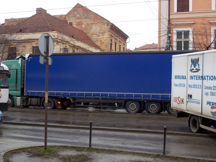 TIMISOARA. A patruns in centrul Timisoarei cu TIR-ul, a avariat doua masini parcate si s-a oprit disperat in fata magazinului Bega. Este patania unui sofer din Satu Mare care sustine ca s-a ‘ratacit’ in Timisoara. N-a calculat bine nici distantele si a intrat pe strada Proclamatia de la Timisoara, unde a reusit sa agate doua autoturisme. Acestea au fost tarate si lovite unul de celalalt.
