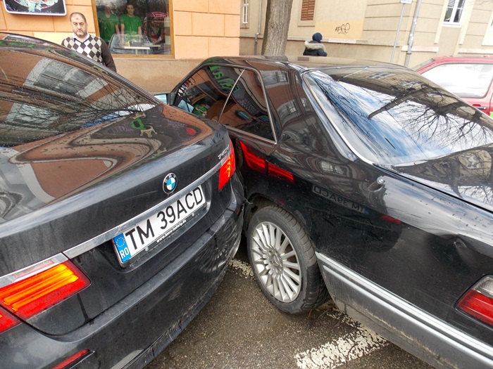 Una dintre masinile avariate apartine unui avocat faimos din Timisoara: Carin Doru Antonescu.