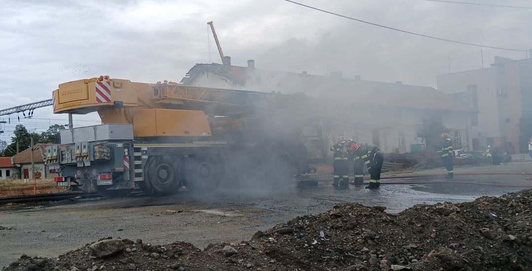 TIMISOARA. S-a dat alarma miercuri după-amiază la Timișoara, după ce o macara a luat foc, nu departe de Gara de Nord din Timișoara.