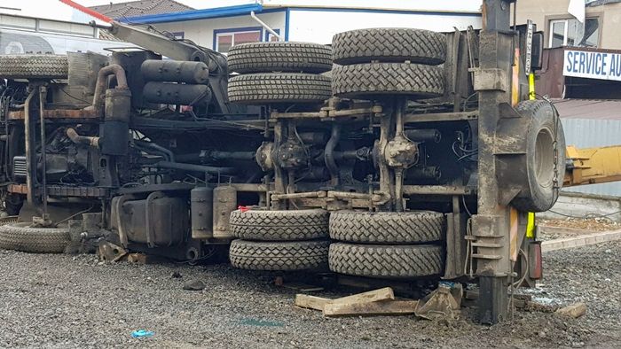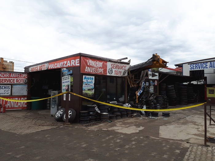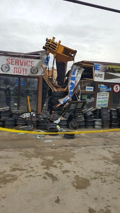 TIMISOARA. Incident grav intr-o comuna de langa Timisoara. O automacara s-a dezechilibrat si s-a prabusit peste un service auto. Un om a fost ranit