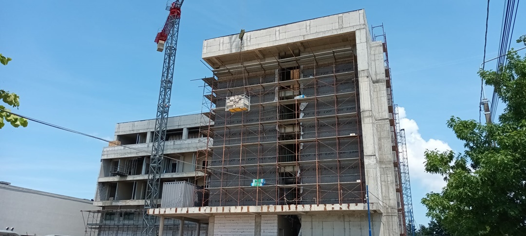 Structura de rezistenta a cladirii e gata de luni bune, s-au montat si geamurile, iar inca din februarie se lucreaza la finisaje, instalatii interioare si la realizarea utilitatilor la noua maternitate a Spitalului Judetean Timisoara.