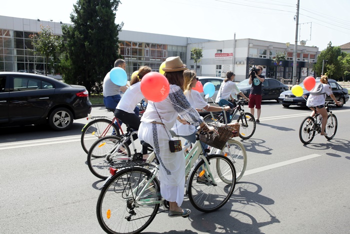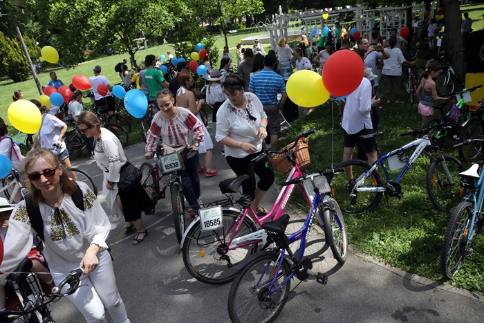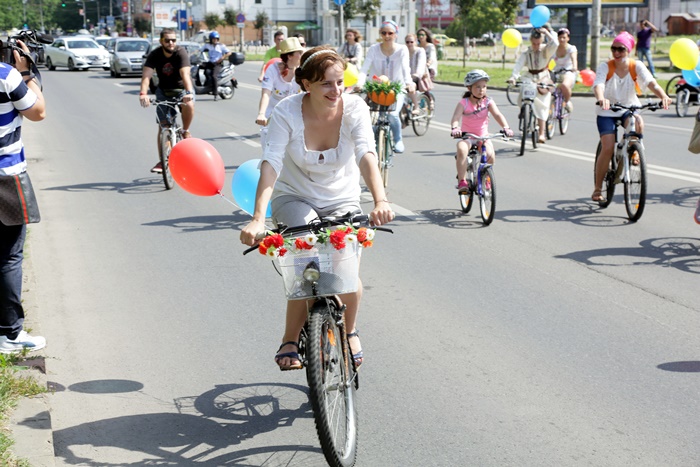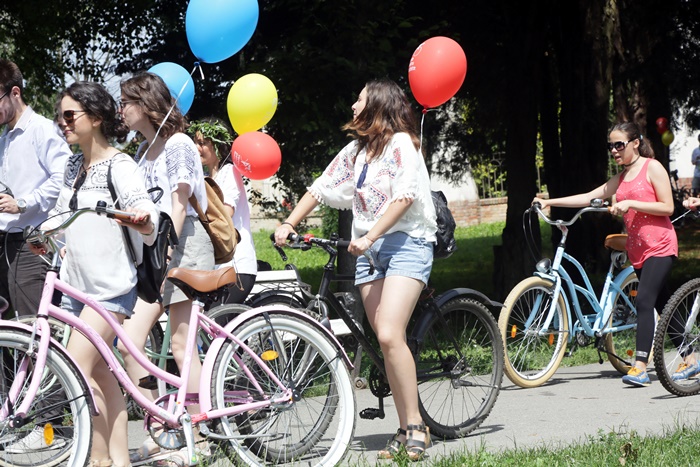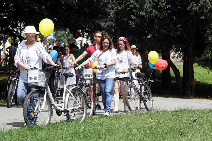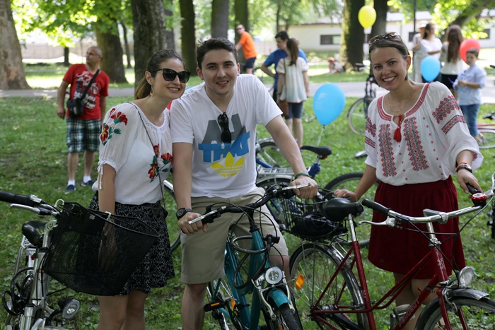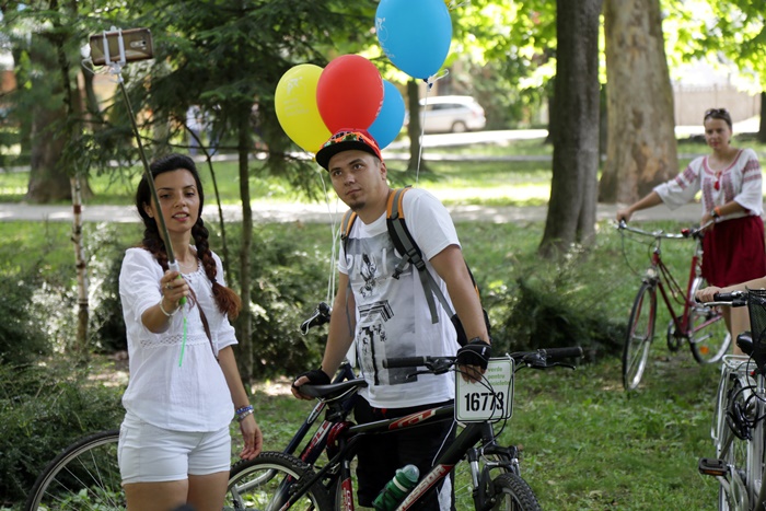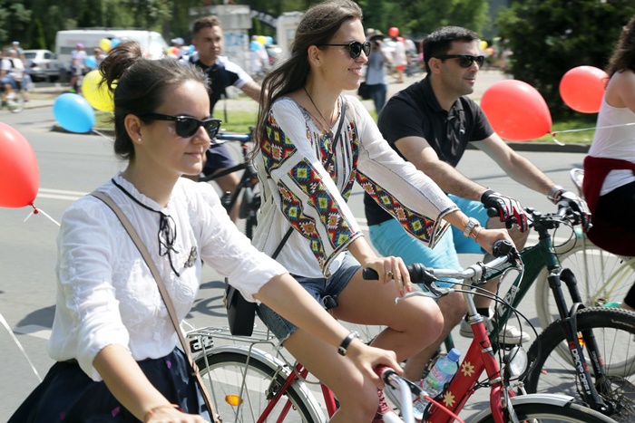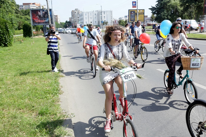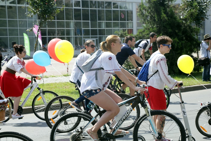 TIMISOARA. Au colorat orasul printr-o plimbare plina de farmec! Biciclistii din Timisoara au pedalat imbracati cu piese din costume populare romanesti si au sarbatorit astfel Ziua Internationala a Iei.