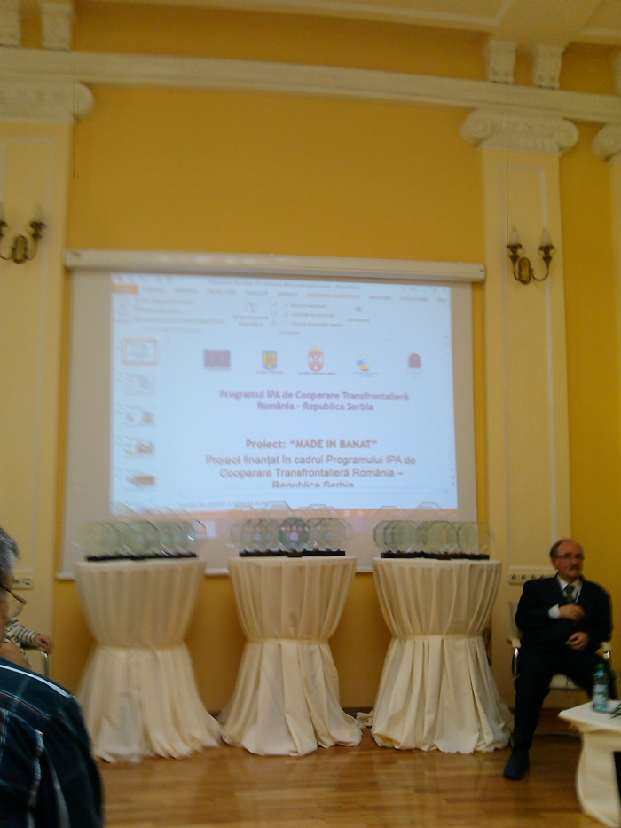 Cu ocazia conferintei de final pentru proiectul “Made in Banat”, Camera de Comert, Industrie si Agricultura Timisoara a gazduit festivitatea de acordare a diplomelor de excelenta si a trofeelor pentru semnatarii Pactului de Cooperare Transfrontaliera, institutiilor/organizatiilor care s-au implicat in implementarea/promovarea proiectului, firmelor care au participat activ la actiunile proiectului, din Romania si din Serbia.