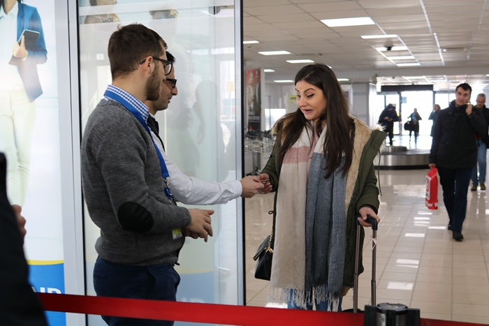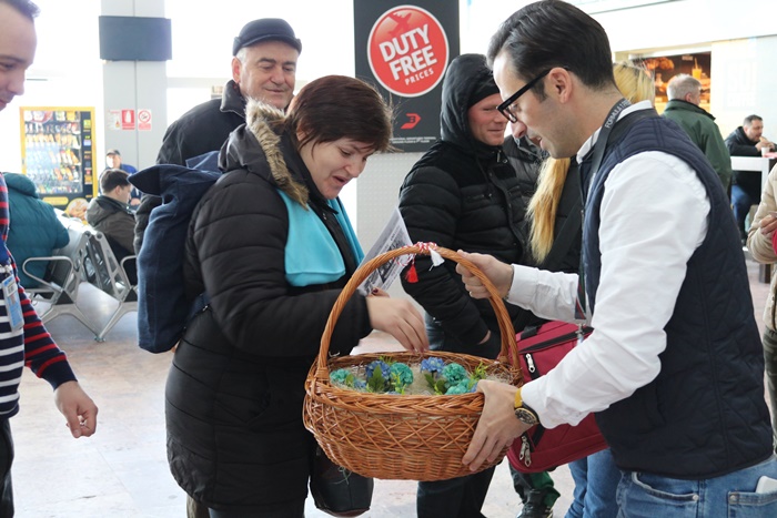 TIMISOARA. Deși astăzi a fost una dintre cele mai friguroase zile ale anului, angajați aeroportului au dorit să anunțe venirea primăverii prin oferirea de mărțișoare pasagerelor care s-au aflat în aeroport în cursul zilei.