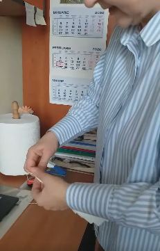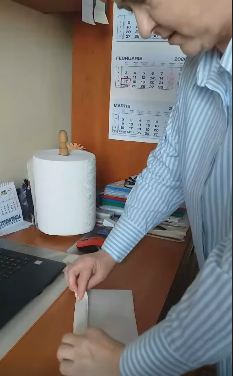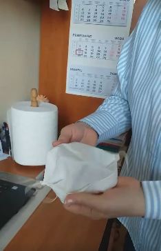 Femeia s-a filmat in timp ce isi facea singura o masca de protectie folosindu-se de doua elastie, un servetel si doua capse.