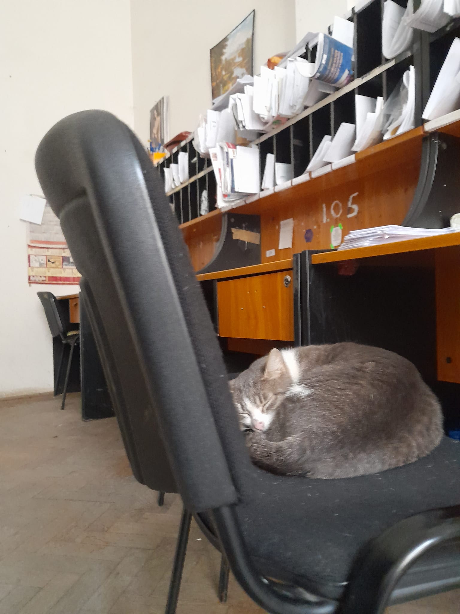 TIMISOARA. Tolanite pe cate un calorifer, pe scaune sau dormind in cate o cutie. Asa le gasesc postasii zilnic pe pisicile care de mai multa vreme s-au aciuat la Oficiul Postal de Distribuire Timisoara, unde au fost adoptate de angajatii Postei Romane.