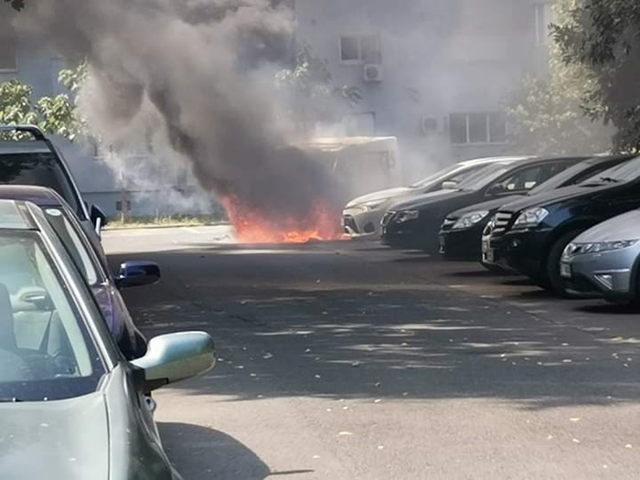 TIMISOARA. O masina de livrat colete a fost cuprinsa de flacari la intersectia strazilor Arh. Duiliu Marcu cu Aleea Tiberiu Brediceanu. Au intervenit rapid pompierii.
