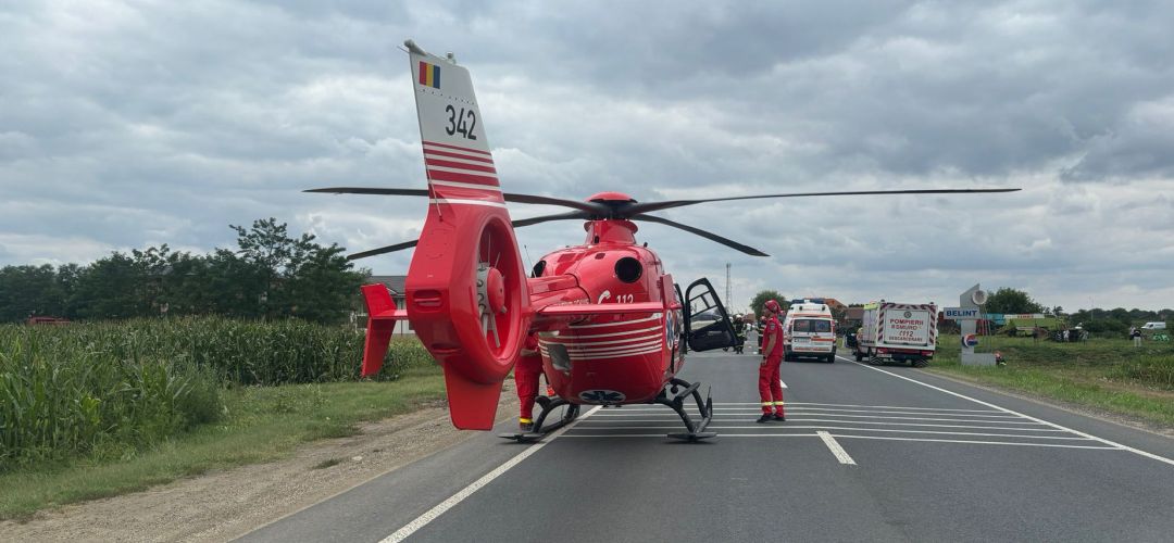 “În jurul orei 14:25 am fost solicitați să intervenim la un accident rutier în localitatea Belinț, ieșire spre Coșteiu. În accident sunt implicate 3 autoturisme în care se aflau 5 persoane, dintre care 3 necesită îngrijiri medicale (o victimă încarcerată).