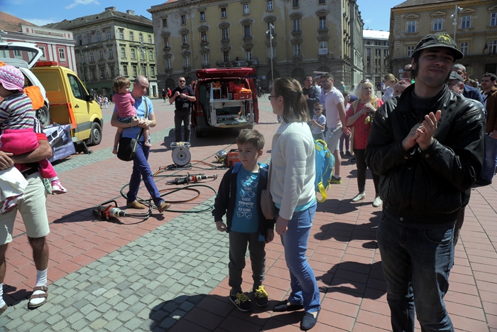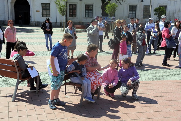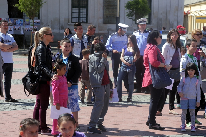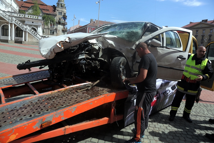 Evenimentul a debutat cu expunerea unei masini avariate in urma unui grav accident de circulatie, pe o platforma, in Piata Libertatii.