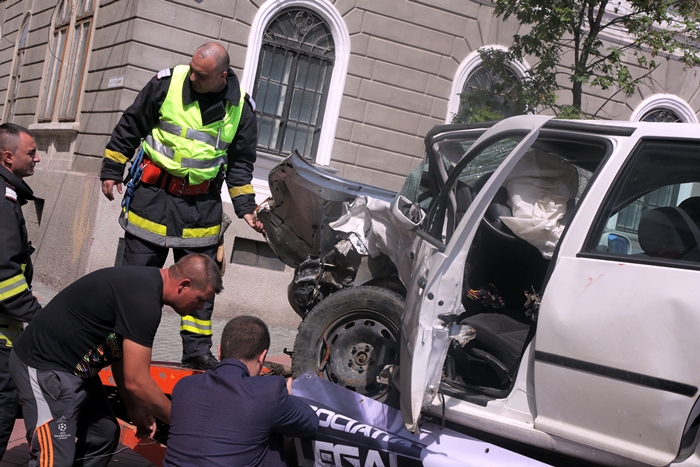 TIMISOARA. Soferii din Timisoara au putut vedea indeaproape care sunt consecintele neatentiei sau bravurii la volan. O masina facuta zob in urma unui accident de circulatie, cu tot cu soferul “mort”, a fost plimbata prin Timisoara, duminica.