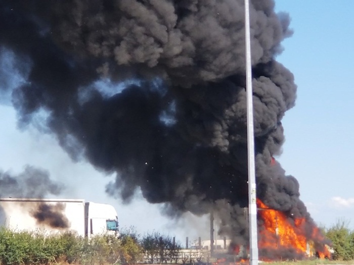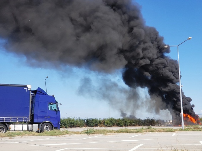 Flacarile au cuprins o dubita de transport marfa aflata in parcarea unei benzinarii de pe autostrada. Coloana de fum era vizibila a de la cativa kilometri distanta.