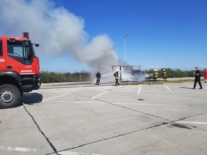 TIMISOARA. Incendiu marti dupa-amiaza intr-o parcare de pe autostrada A1, in apropiere de Timisoara.