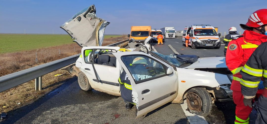 TIMISOARA. Accident groaznic, luni dupa-amiaza, pe Autotstrada Vestului, la limita dintre judetele Timis si Arad.