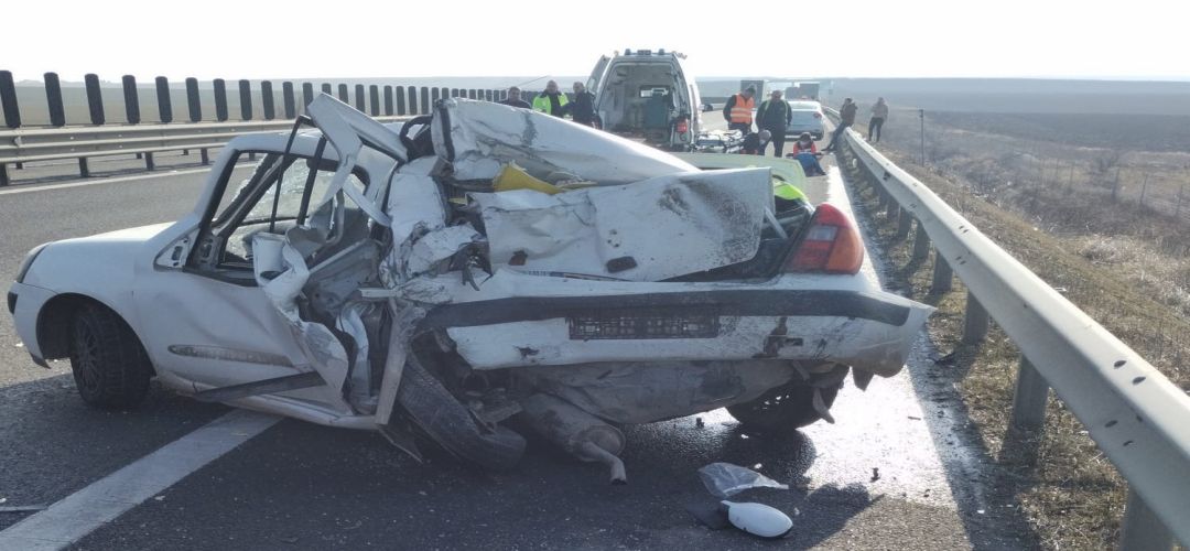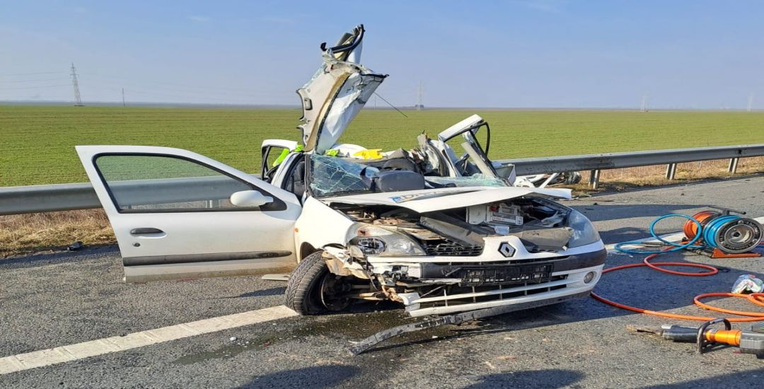 Un impact devastator a avut loc inaintea coborarii de pe soseaua de mare viteza catre Ortisoara. Un autoturism oprit pe banda de urgenta, din pricina unor defectiuni tehnice, a fost izbit in plin de un tir cu numere de Bulgaria.