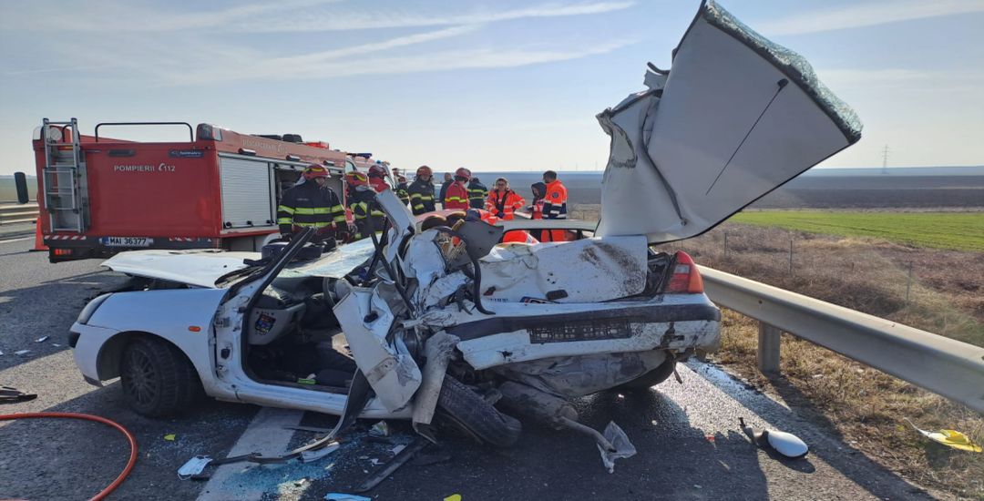 Din primele informatii, soferul masinii a murit pe loc, iar o femeie aflata pe scaunul din dreapta a fost grav ranita. Cei doi au ramas incarcerati in autoturismul zdrobit.