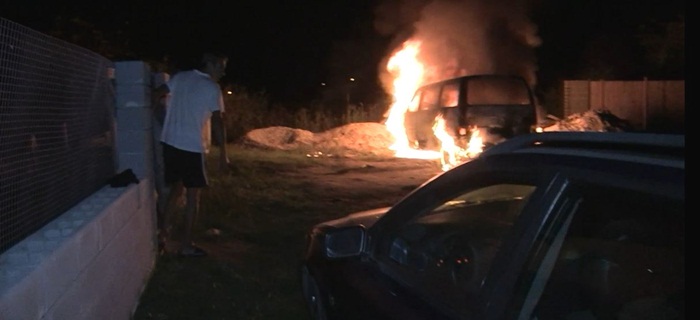 Un apel la 112 ii anunta pe pompieri ca o masina a luat foc la Mosnita Veche. Aceasta era parcata in fata unei case, iar proprietarii au fost cei care au zarit flacarile.