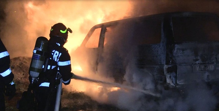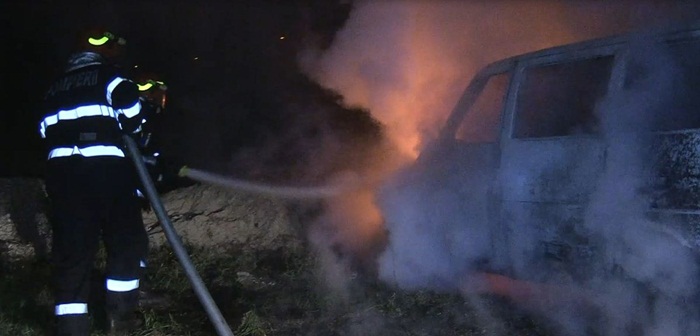 In momentul in care au ajuns la fata locului, pompierii au gasit o dubita Volkswagen Transporter care era cuprinsa in totalitate de flacari.