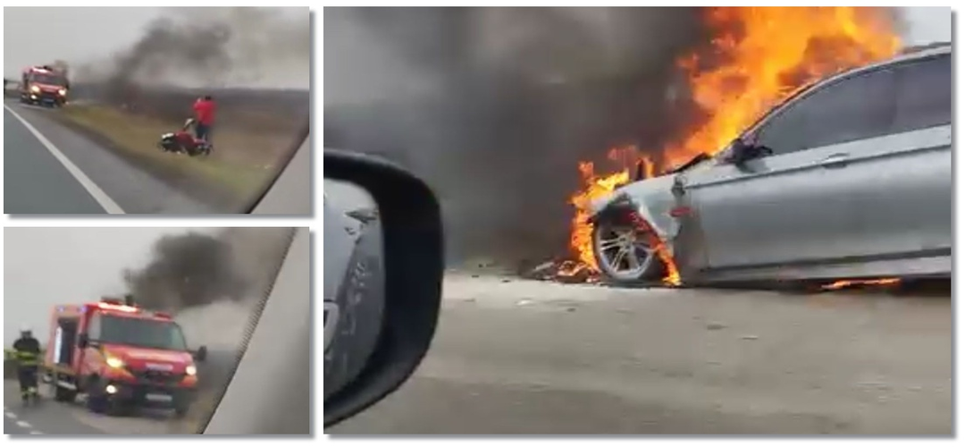 Șoferul conducea pe drumul ce leaagă Timișoara de Remetea Mare, iar la un moment dat a simțit miros de fum și a tras pe dreapta. De sub capotă au izbucnit flăcări, iar bărbatul a sunat la 112.