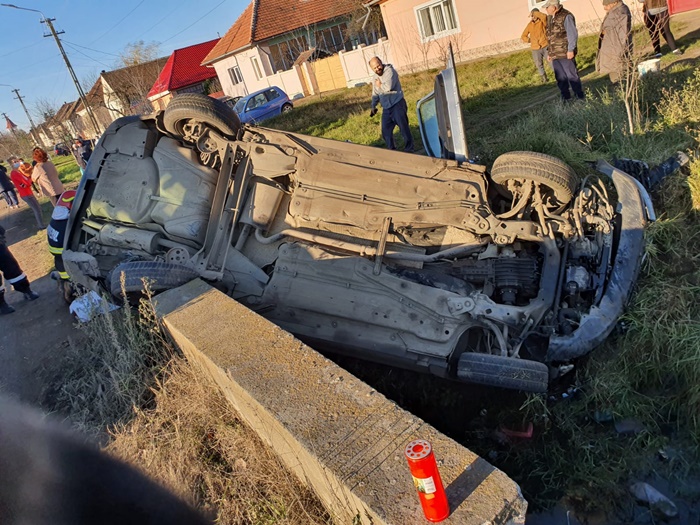 Accidentul s-a petrecut la iesirea din comuna Masloc spre Fibis. Femeia care conducea autoturismul a pierdut controlul volanului intr-o curba, iar masina a derapat si a lovit cu putere capul de pod. S-a rasturnat mai apoi cu ‘botul’ in sant.