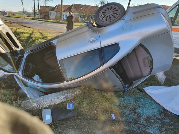 TIMISOARA. Grav accident de circulatie pe soseaua ce leaga Timisoara de Lipova, sambata dimineata. O masina condusa de o soferita, in care erau 3 oameni, a zburat de pe sosea, a izbit un cap de pod si s-a infipt intr-un sant de pe marginea drumului. Un om a murit.