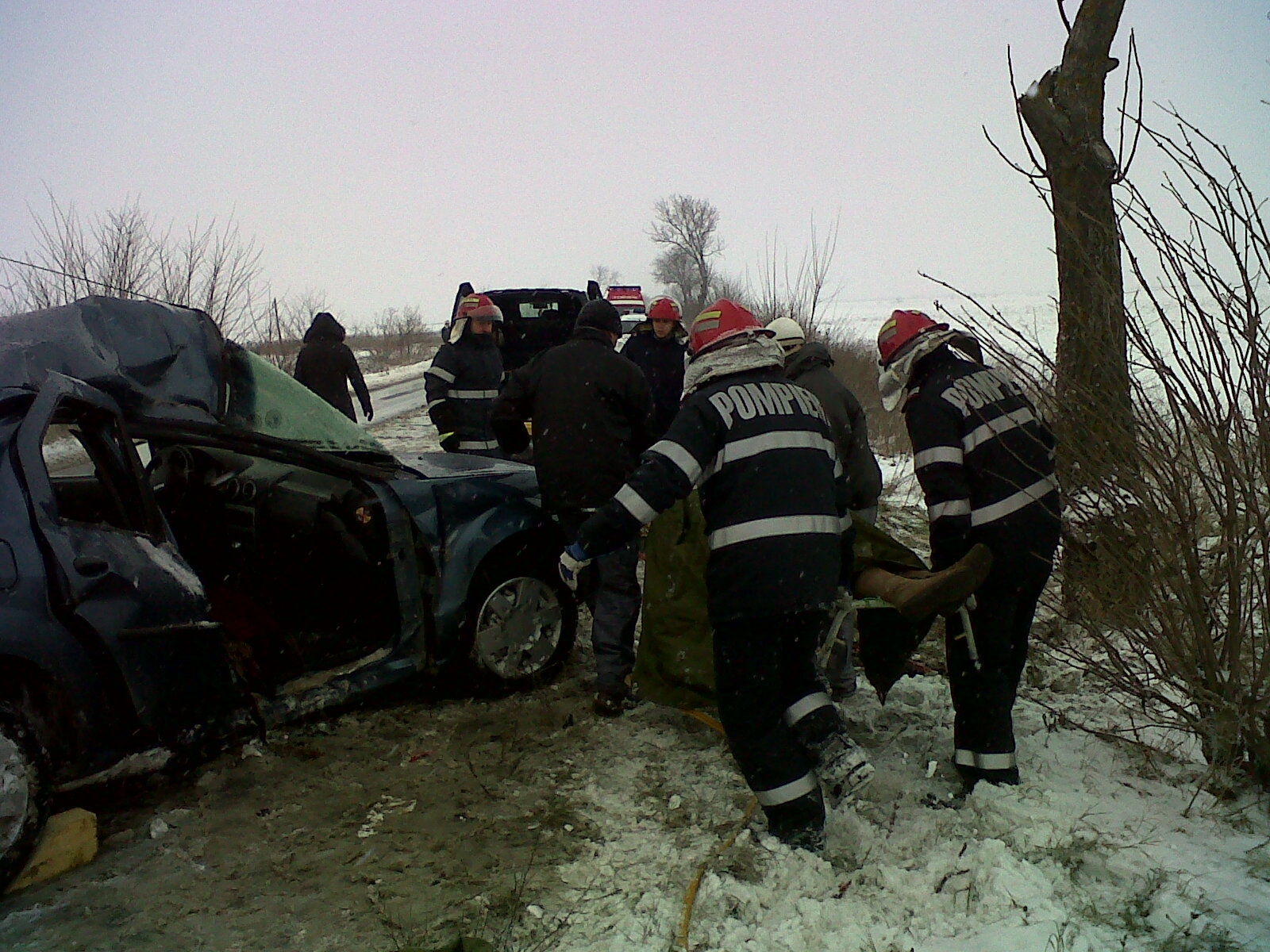 Neatentia si viteza pe soseaua alunecoasa au dus la producerea unui grav accident intre Lovrin si Sannicolau Mare. O femeie a murit, iar fiul ei aflat la volan este ranit dupa ce autoturismul scapat de sub control s-a izbit violent de un pom de pe marginea drumului.