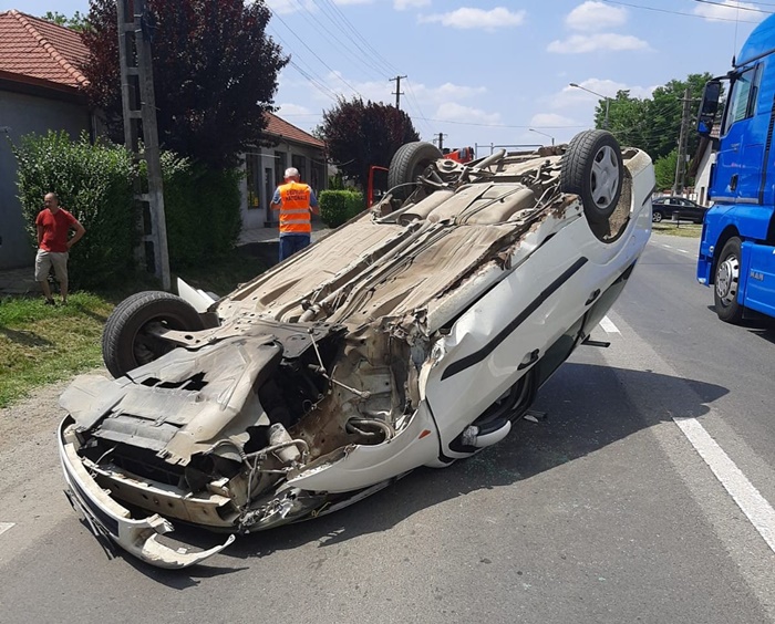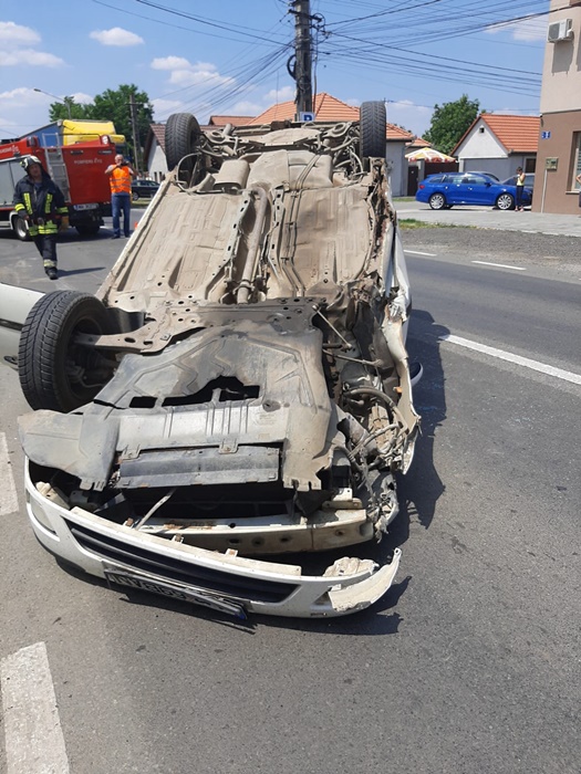 Accidentul a avut loc la Pecica. Un barbat in varsta de 61 de ani din Seitin a pierdut controlul volanului, a intrat intr-un cap de pod, iar in urma impactului autoturismul s-a rasturnat. Autoturismul a ajuns pe plafon si a blocat o banda de circulatie.