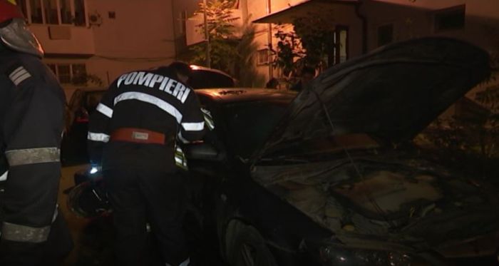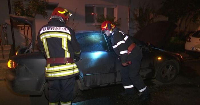 Vecinii au auzit si ei ca in fata blocului se intampla ceva si au sunat imediat la numarul de urgente 112. Locatarii spun ca mai intai s-a auzit o bubuitura, apoi flacarile au cuprins masina, iar doi baieti care purtau gluga pe cap au fost zariti in zona.