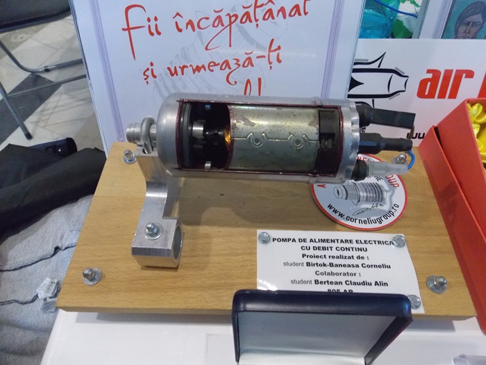 “Este un separator de ulei activ care are un motor electric. In general va fi folosit pentru camioane si diferite tipuri de masini cu motoare mari. Acest aparat separa 400 de litri pe minut de gaz de carter si este special deoarece unul normal separa undeva la 100 de litri pe minut. Acum suntem in negocieri cu clientii pentru a-l instala“, a spus inginerul proiectant al dispozitivului.