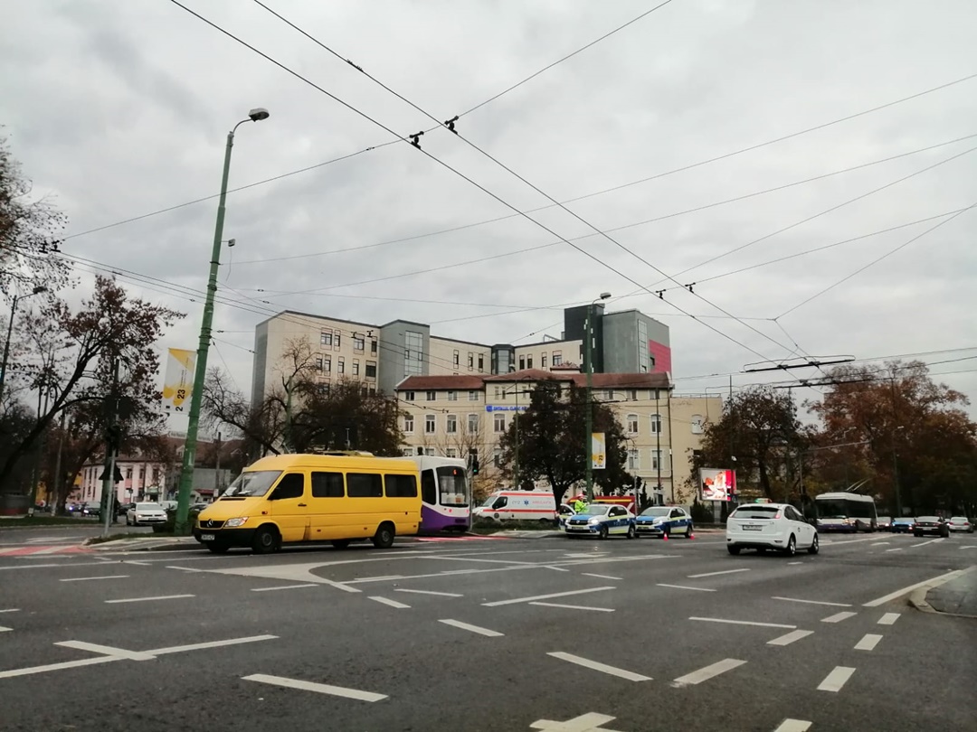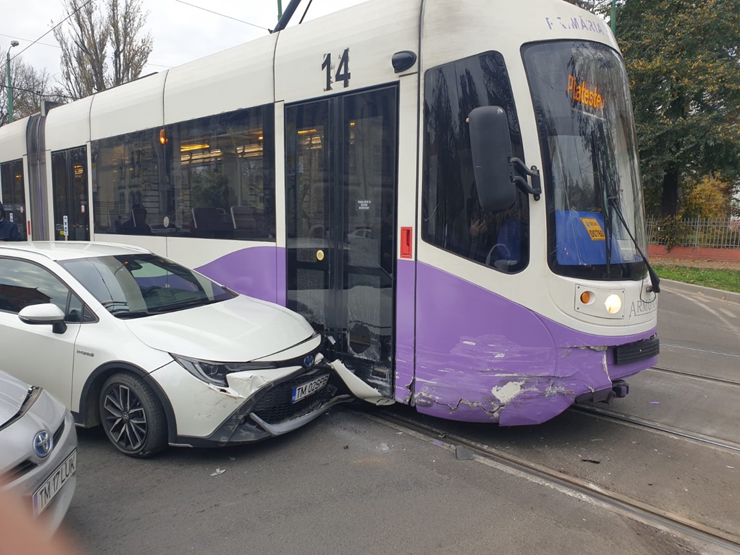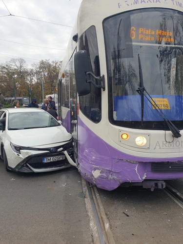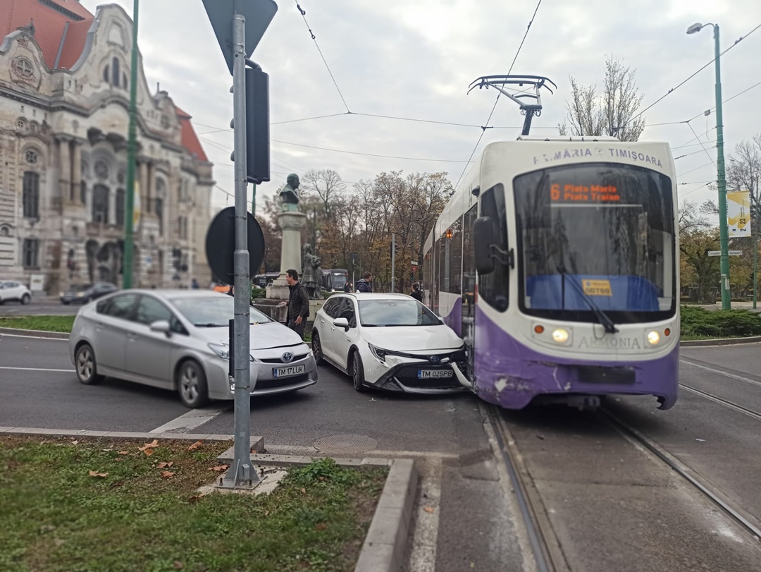 TIMISOARA. Accident, joi dimineata, in intersectia de la Spitalul de Copii. Doua masini au lovit un tramvai Armonia.