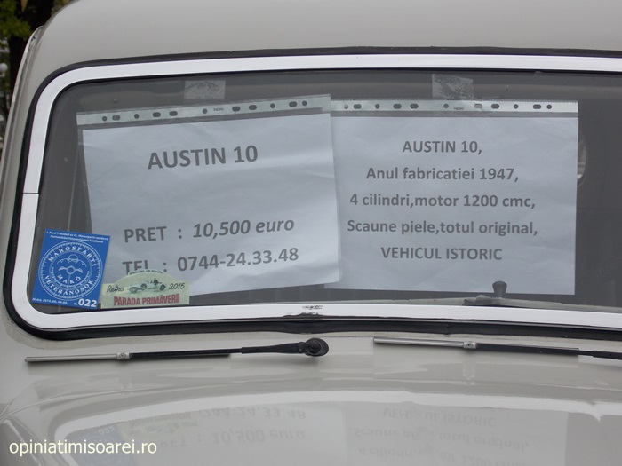 „Am pus ochii pe o masina Austin, fabricata in 1947. Scaune de piele, motor de 1200 cmc. Din pacate, proprietarul cere 11 000 de euro pe ea. Oricum, sunt uimit de tot ce am vazut aici”, ne-a declarat un fan al masinilor de epoca.