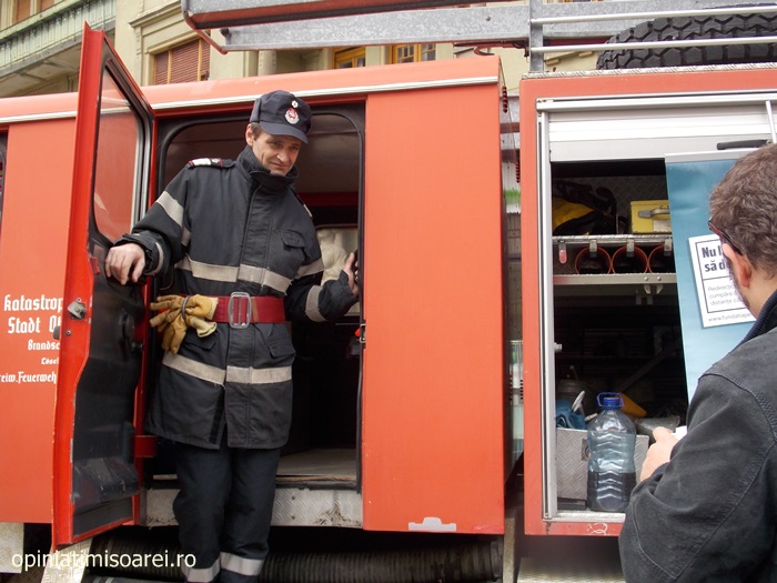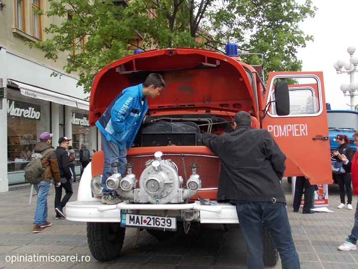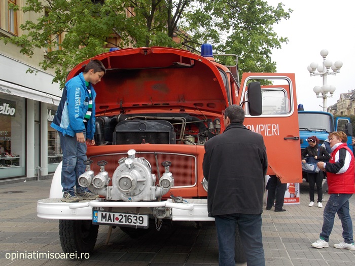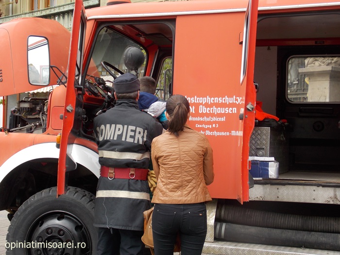 „Inspectoratul pentru Situatii de Urgenta participa cu doua autospeciale din anul 1980, respectiv anul 1981, autospeciale de prima interventie si comanda pe care le folosim la inundatii. Copiii au fost foarte entuziasmati. Au vrut sa vada cum e inauntru si ce dotari au masinile”, a spus pentru opiniatimisoarei.ro sublocotenent Lucian Bogdan Mutu.