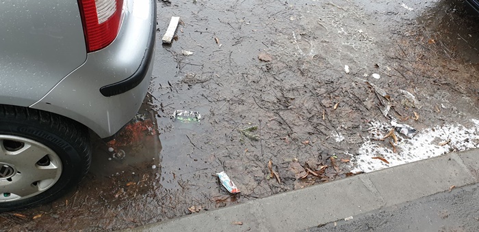 Stratul gros de noroi amestecat cu frunze putrezite acopera portiuni de strazi si trotuare intregi, dar si spatii verzi transformate in mlastini.