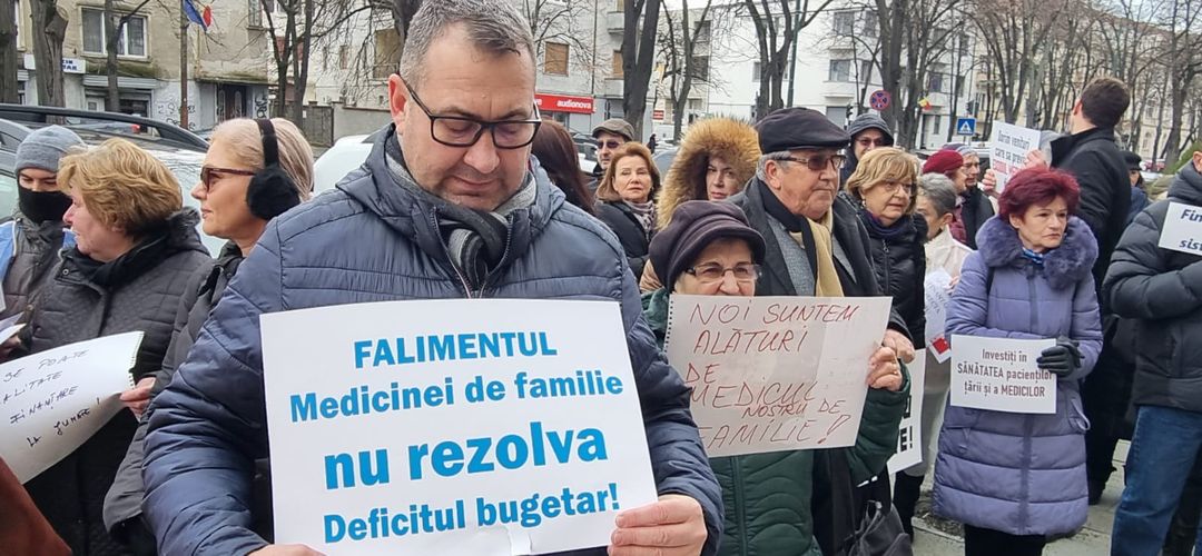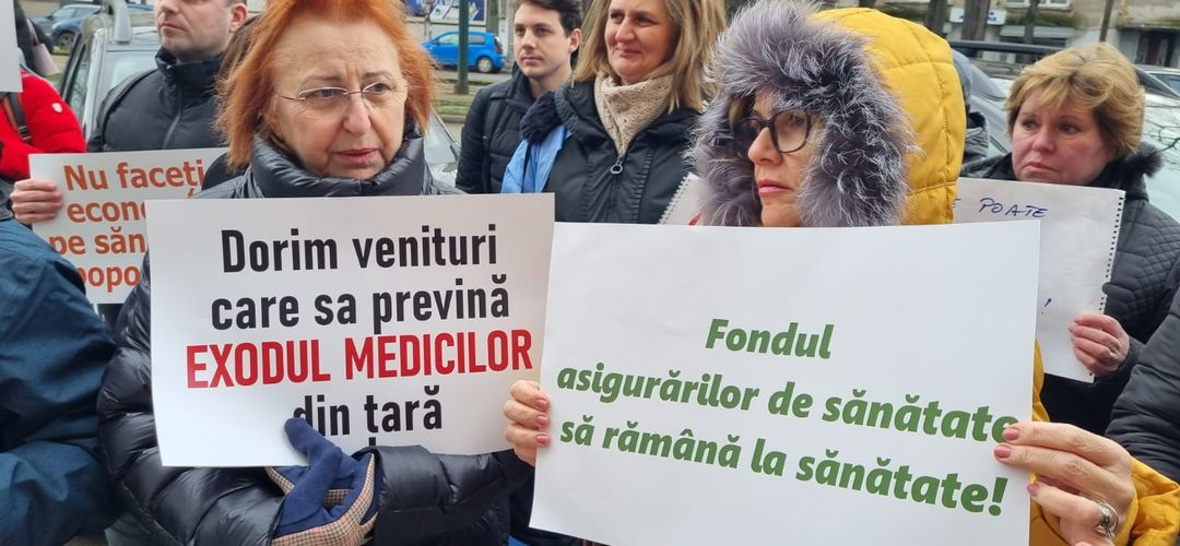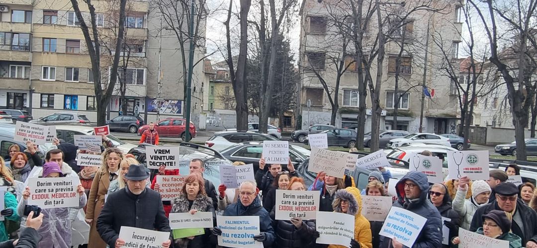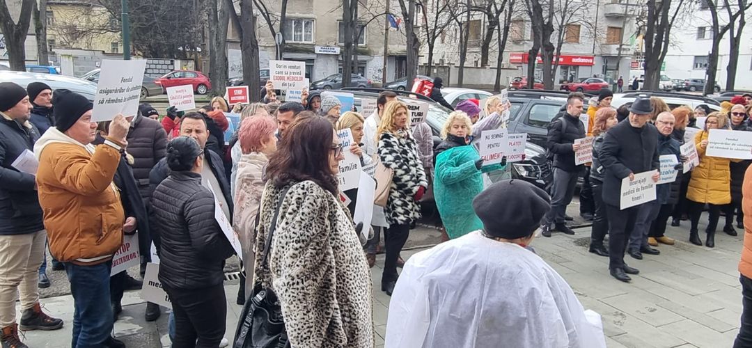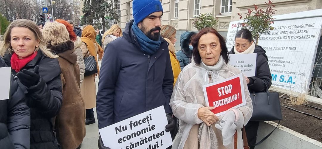 TIMISOARA. Un nou protest al medicilor de familie si din ambulatorii, miercuri dimineata, la Timisoara, in fata Palatului Administrativ. Aceasta dupa ce luni au pichetat in fata Casei Judetene de Asigurari de Sanatate.