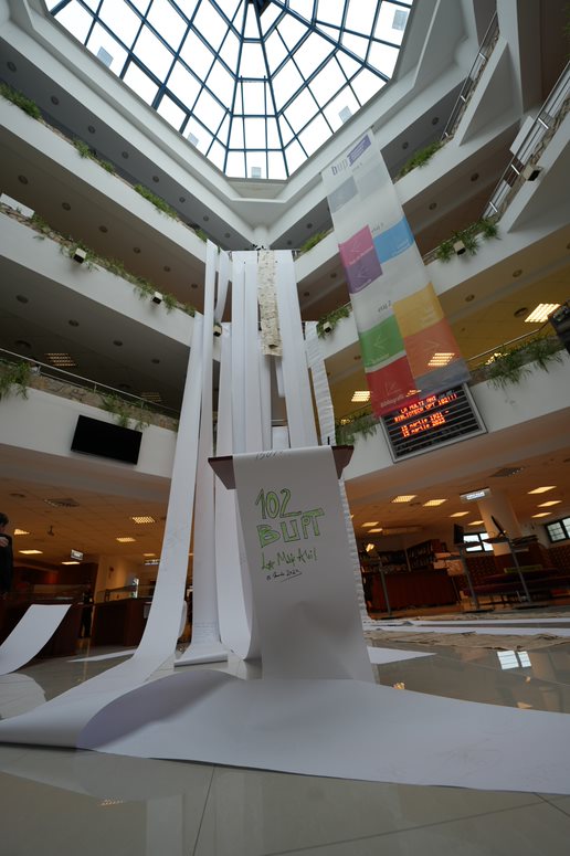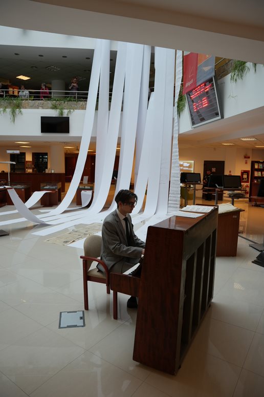 Cu ocazia aniversării, studenți de la Facultatea de Arhitectură și Urbanism a UPT, coordonați de ș.l.dr.arh. Cristina Povian, au realizat o instalație care se întinde pe toate cele patru nivele ale bibliotecii, care duce cu gândul la continuitate, la legătura dintre trecut, prezent și viitor, dar și la paginile care așteaptă să fie scrise.