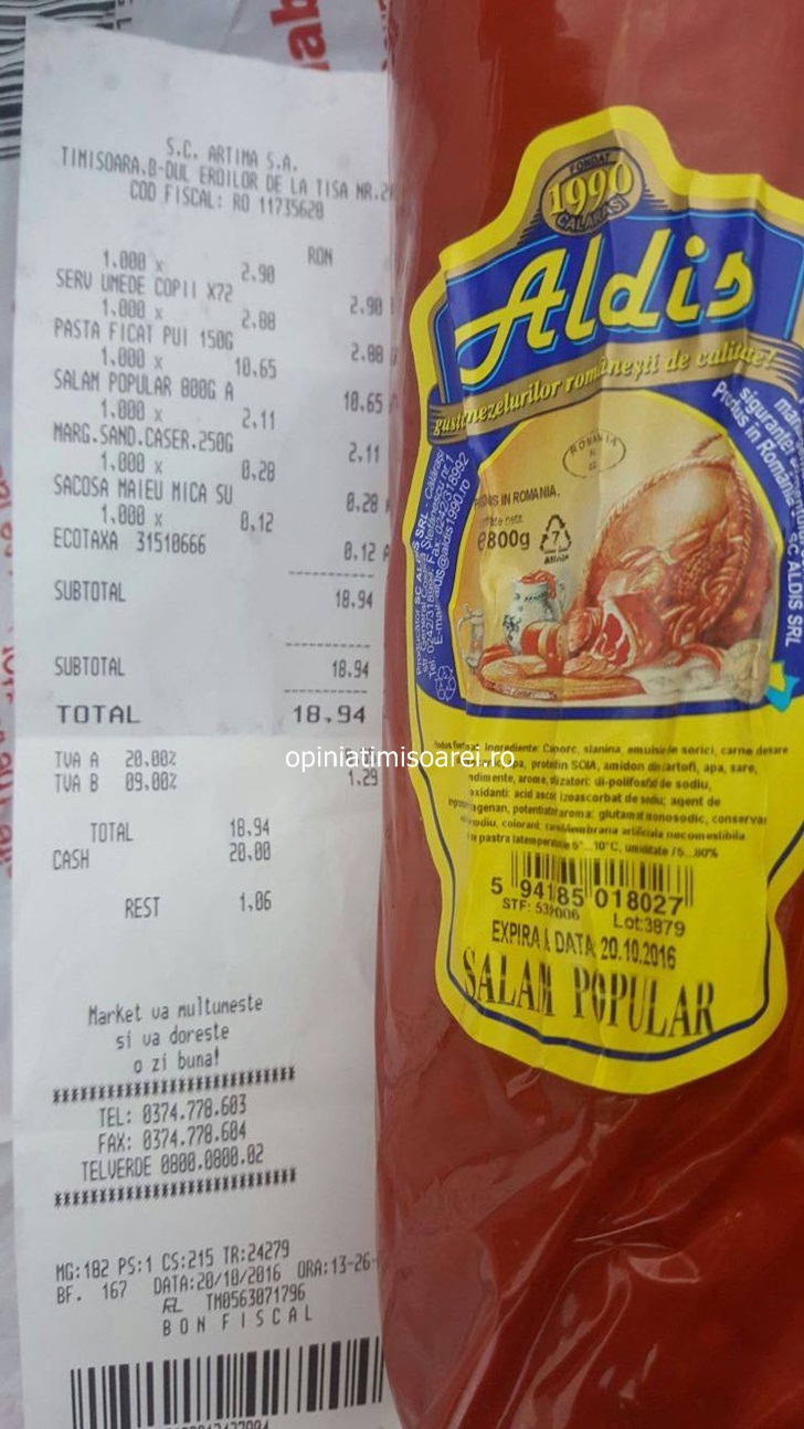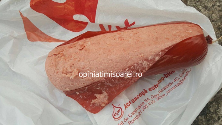 “Am cumparat de la Carrefour din Complexul Studentesc din Timisoara. Am luat un salam care, cand am ajuns acasa, a pocnit pur si simplu, a explodat, am bonul aferent, dovada ca l-am cumparat in ziua expirarii“, a explicat timisoreanul.