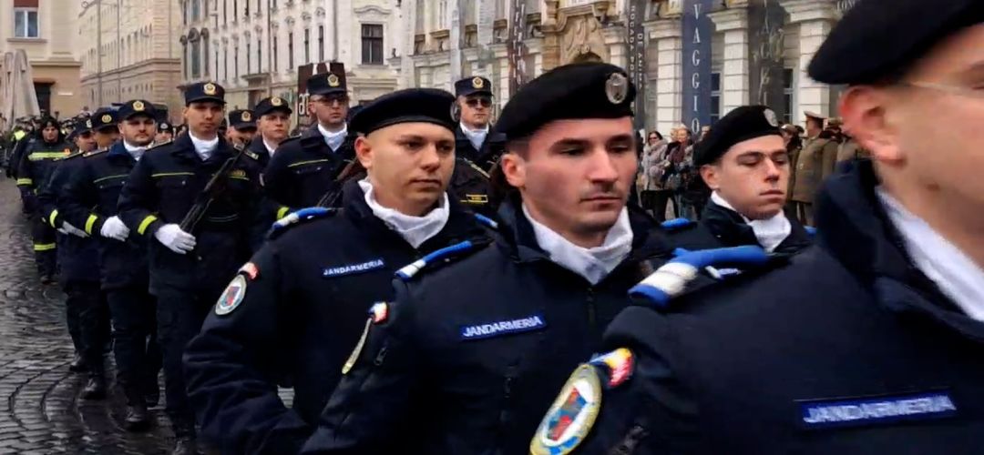 Evenimentul a continuat în Piața Unirii, unde s-a savarsit un serviciu religios, după care a urmat defilarea detașamentulu de onoare.