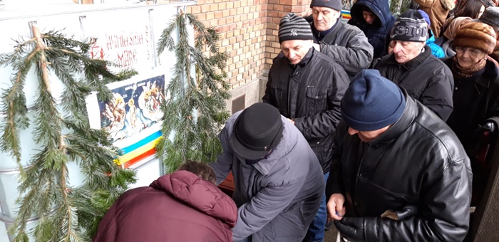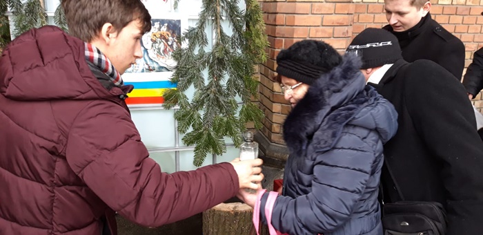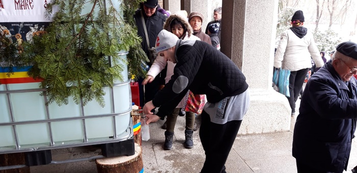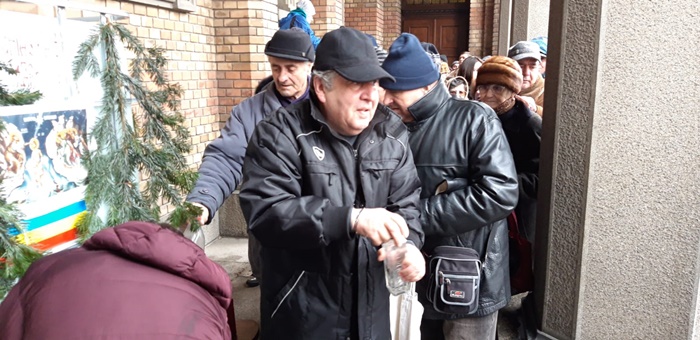 Acestia s-au asezat la coada si pe doua randuri pentru a ajunge mai repede la agheasma, dat fiind faptul ca afara era un frig patrunzator.