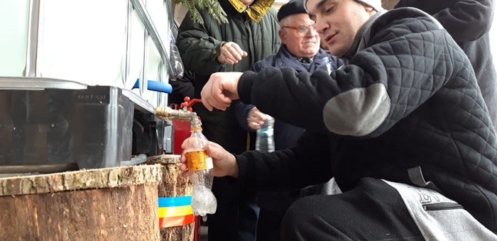 Oamenii spun ca apa sfintita le aduce liniste in case si ii fereste de boli tot anul.