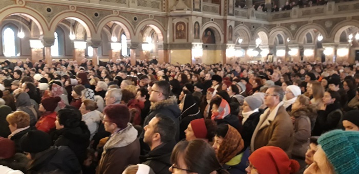 TIMISOARA. Mii de timisoreni au venit si in acest an la Catedrala Mitropolitana din Timisoara de Boboteaza. Oamenii au urmarit slujba si s-au rugat, dupa care s-au aliniat in afara lacasului de cult pentru a primi apa sfintita.