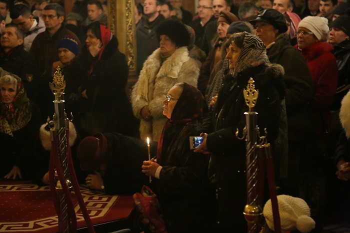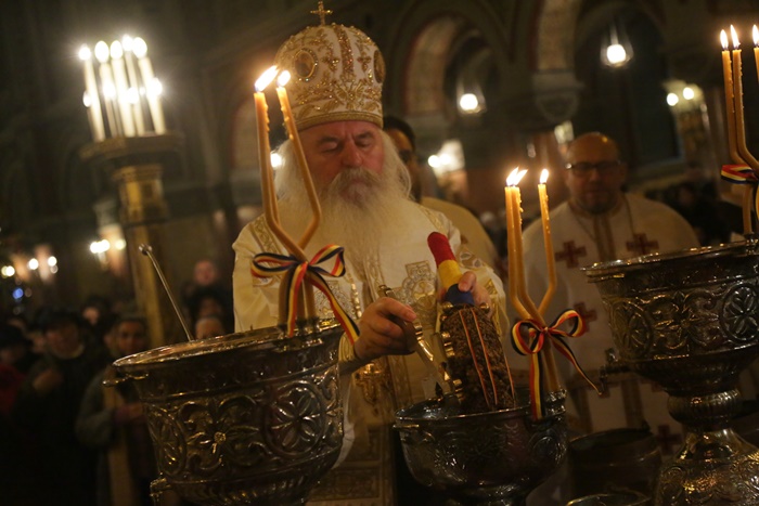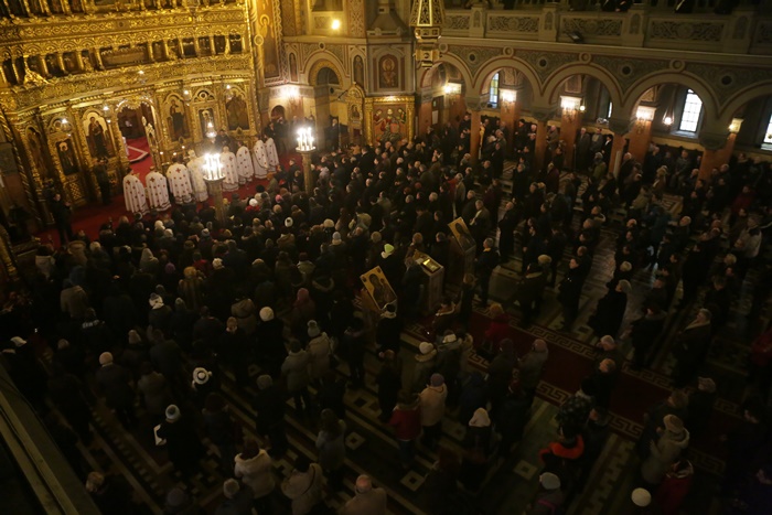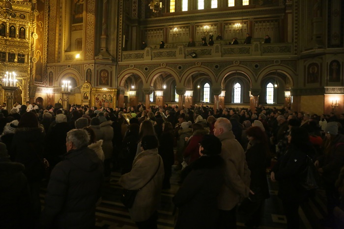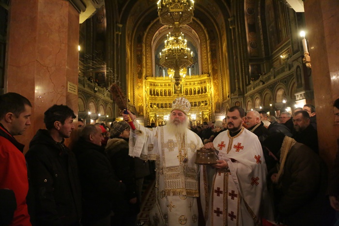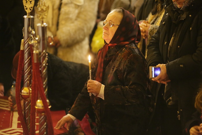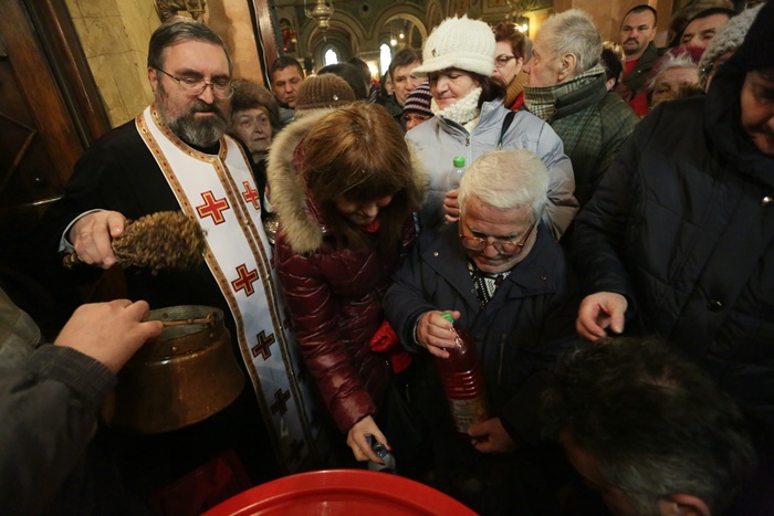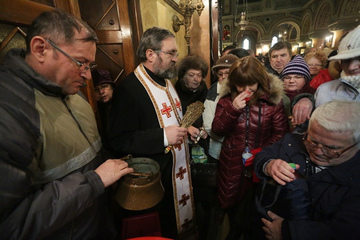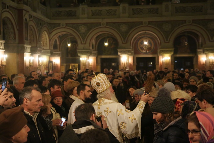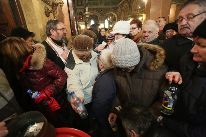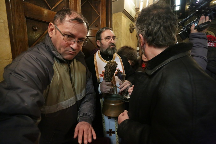 Reprezentantii bisericii au decis sa imparta apa sfintita in holul Catedralei, si nu afara, asa cum se obisnuia. Nimeni insa nu s-a inghesuit. Dupa orele state in picioare la slujba, unui barbat mai in varsta i s-a facut rau.