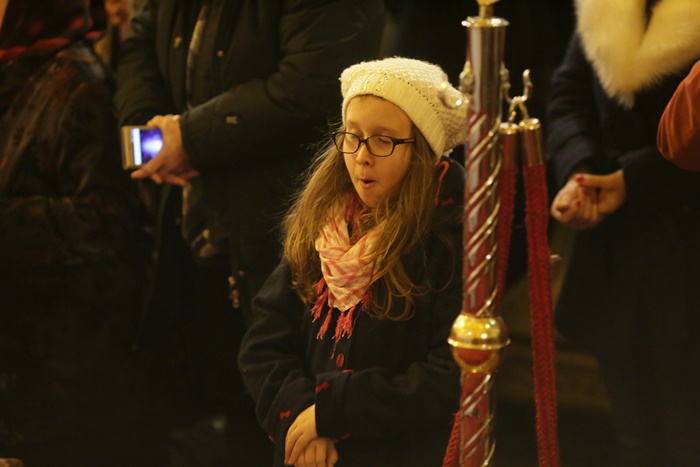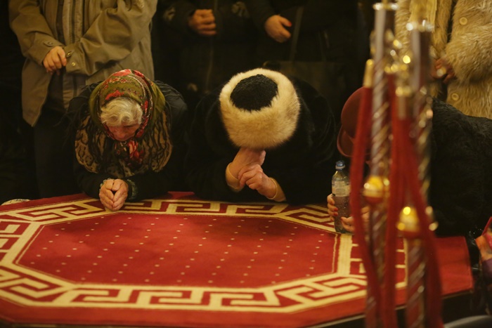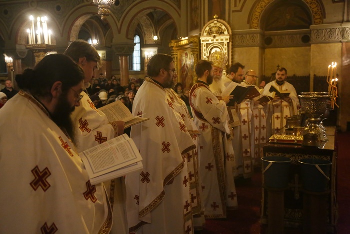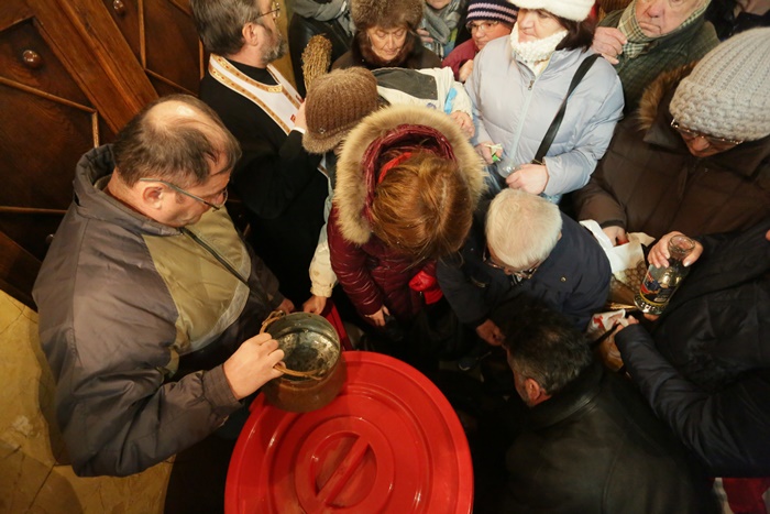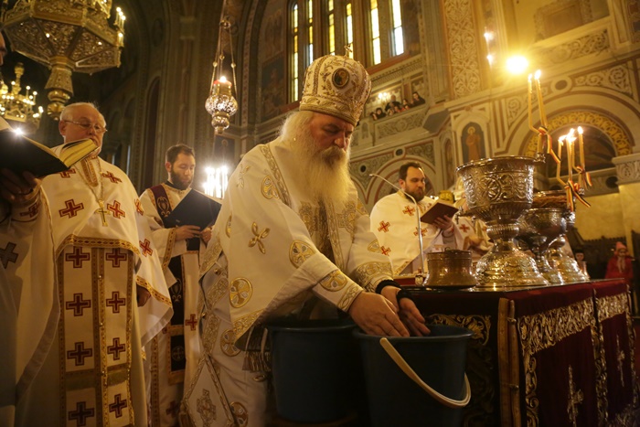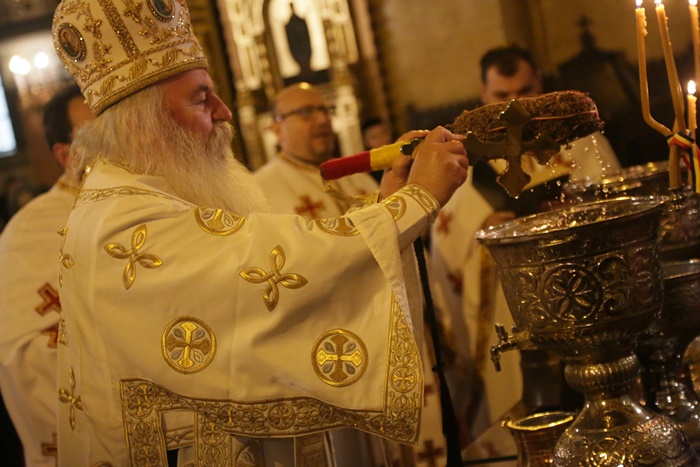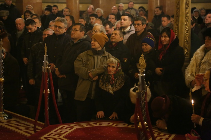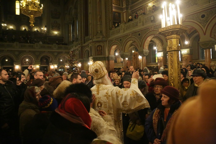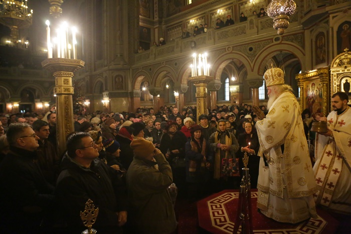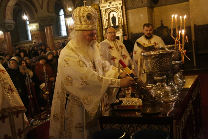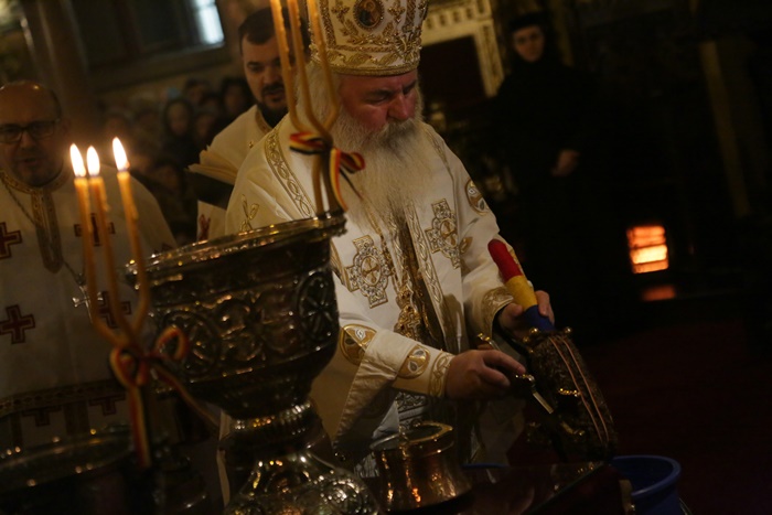 Reprezentantii bisericii au decis sa imparta apa sfintita in holul Catedralei, si nu afara, asa cum se obisnuia. Nimeni insa nu s-a inghesuit. Dupa orele state in picioare la slujba, unui barbat mai in varsta i s-a facut rau.