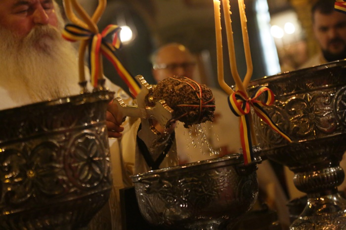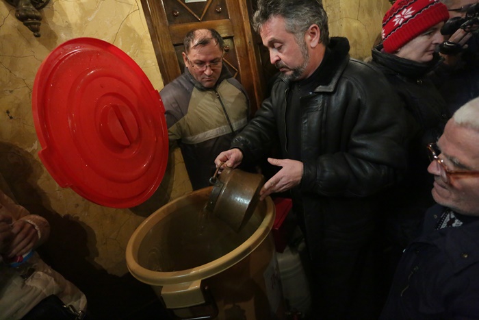 In total, peste 1.500 de litri de apa au fost sfintiti de preoti, iar agheasma se va imparti pe tot parcursul zilei credinciosilor ortodocsi.