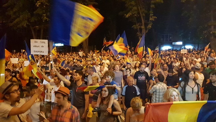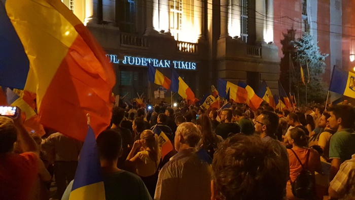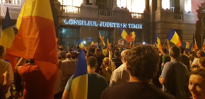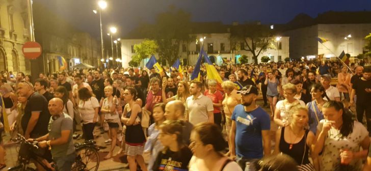 UPDATE: La orele 20.30, in centrul Timisoarei erau aproximativ 2000 de oameni. Acestia striga mesaje de sustinere pentru cei din Bucuresti si lozinci antiguvernamentale, cer alegeri anticipate si formuleaza critici la adresa celor care stau la terasele din centru sau in case si nu li se alatura.