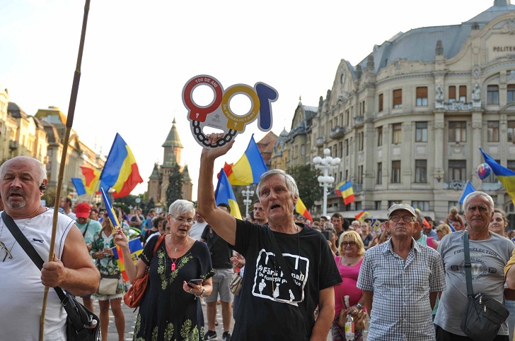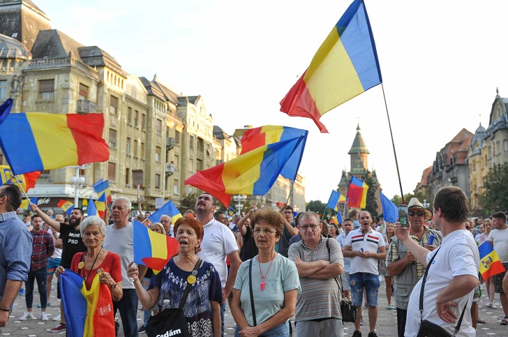 Cu putin inainte de orele 20.00, timisorenii stransi in Piata Victoriei au inceput protestul intonand Desteapta-te, romane!, Imnul de stat al Romaniei.
